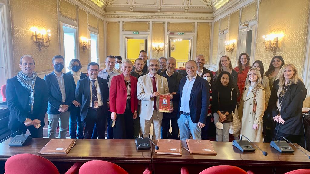 Sei studentesse della John Cabot University e la loro insegnante di Arte e Storia. Assieme a loro la delegazione della New Jersey Italian Heritage Commission, guidata dal chairman Bob Di Biase, accompagnato dalla giornalista Eszter Vajda responsabile del progetto “You, me and Sicily” che con il presidente della Fondazione “Bellini”, prof. Rosario Faraci, ha promosso l’interessante iniziativa. E’ stata una giornata intensa quella trascorsa in città da un gruppo di studenti americani della “John Cabot University”. Il gruppo ha incontrato in Curia il vescovo, mons. Antonino Raspanti, al Palazzo di Città il sindaco, ing. Stefano Alì, il presidente del Consiglio comunale, Fabio Fontanesca, gli assessori dott. Fabio Manciagli, avv. Mario Di Prima, Giovanni Raciti ed ing. Salvo Grasso, nonché il consigliere comunale dott. Giuseppe Ferlito. E’ stata l’occasione per ricordare il cav. Mario Marano, che della New Jersey Italian Heritage Commission fu uno dei promotori, impegnandosi in vita e nel lavoro ad integrare gli emigrati italiani in America. Marano, alla sua morte, ha voluto testimoniare il suo amore verso Acireale, donando una generosa somma di denaro alla Diocesi, al Comune di Acireale ed alla Fondazione “Bellini”, che hanno impegnato le risorse della donazione per la ristrutturazione del campanile della Cattedrale, la realizzazione di una statua in ricordo degli emigranti a Santa Maria la scala ed il concorso di idee e di progettazione per il rifacimento del Teatro Bellini. Da parte sua, Bob Di Biase ha auspicato che si possano intensificare gli scambi culturali della comunità italo-americana con gli acesi, come era espresso desiderio del cav. Marano. Nel suo “giro” acese, la delegazione statunitense è stata accompagnata dai consiglieri della Fondazione “Bellini”, dott. Giovanni Cirelli e prof. Salvo Fichera, consiglieri della Fondazione “Bellini”, dall’avv. Salvo Emanuele Leotta, presidente della Consulta comunale della Cultura, e dalla prof.ssa Licia Arcidiacono, dell’associazione culturale “Scarti”.
