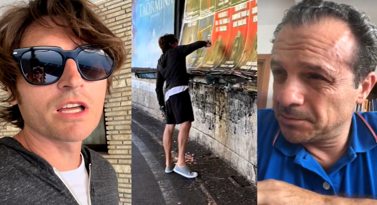 Una denuncia e una sanzione da 618 euro per lo showman Angelo Duro che ha imbrattato i manifesti del suo spettacolo in programma stasera a Taormina. Il comico palermitano ha dipinto con la vernice spray un pene e la scritta “fottetevi”. Una provocazione perfettamente in linea con i testi dell’artista, immortalata dallo stesso Duro e condivisa sui suoi canali social.