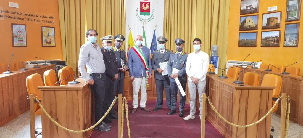 Presenti oggi alla cerimonia, all’interno dell’aula consiliare, il sindaco Pippo Gianni, il presidente del Consiglio comunale, Alessandro Biamonte, l’assessore Tonino Margagliotti, il Comandante dei Vigili Urbani, Giovanni Mignosa e i rappresentanti delle Fiamme Gialle.