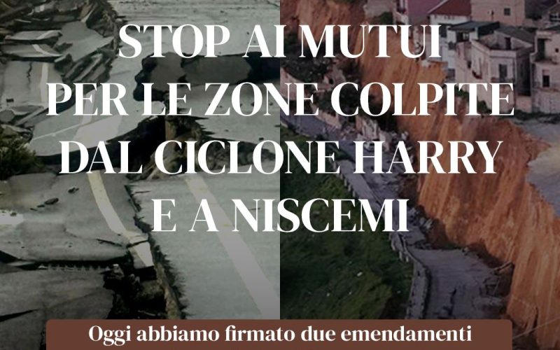 Due emendamenti finalizzati a sostenere concretamente famiglie e imprese duramente colpite dagli eventi calamitosi legati al ciclone Harry in Sicilia sud orientale e alla frana che ha interessato il territorio di Niscemi. A firmarli il deputato regionale Carlo Auteri assieme ad altri colleghi: il primo emendamento prevede il blocco temporaneo dei mutui per i cittadini che hanno subito danni a seguito delle calamità, mentre il secondo consente agli imprenditori delle aree colpite di sospendere il versamento dei contributi per i dipendenti, al fine di alleggerire una fase di estrema difficoltà economica. “Si tratta di misure necessarie – sottolinea Auteri – per garantire un sostegno immediato a chi oggi si trova ad affrontare conseguenze pesantissime, sia sul piano familiare che produttivo. L’obiettivo è dare respiro ai territori colpiti e creare le condizioni per una ripartenza concreta, con serietà e senso di responsabilità. La Regione deve essere al fianco delle comunità colpite non solo con dichiarazioni di principio, ma con strumenti legislativi capaci di incidere davvero sulla vita delle persone e sul tessuto economico locale”
