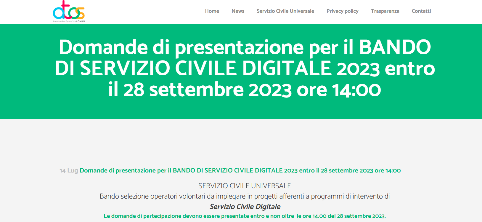 - SCD – OLTRE SCUOLA – Ente titolare progetto: A.T.O.S. ONLUS