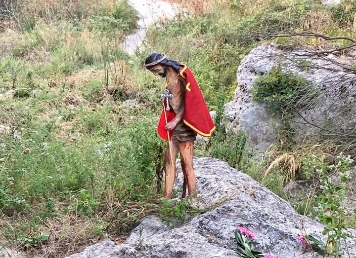 Un percorso guidato per far conoscere, attraverso le letture sceniche di Tanino Golino, storico e ri-cercatore di cultura religiosa, e i cunti sulle piante citate nella Bibbia a cura di Paolino Uccello, etnoantropologo e guida naturalistica, la leggenda che narra del ritrovamento nella Cava Bagni dell’antico simulacro dell’Ecce Homo, trafugato dalla Chiesa Madre, che lungo il percorso diventò così pesante da lasciare le orme sul terreno.