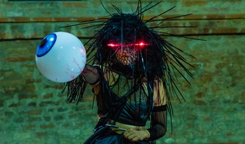 Il site-specific dell’artista siracusana, nonostante il rinvio di sabato 28 maggio a causa del maltempo, è riuscito ad attrarre molte presenze e a creare un enorme trasporto emotivo. L’incanto è stata la parola d’ordine di una delle chicche del festival curato da Vittorio Erlindo. Le pareti rinascimentali, un tempio a porte aperte da cui esce la performer in abito nero con filamenti illuminati e sguardo bionico che si accende di rosso. Al centro del cortile un bulbo d’occhio gigantesco in cui Marilena Vita inserisce una mano che poi estrae ed espone, sanguinante, al pubblico: è la guerra che si insidia nelle vite di ciascuno, è Circe che attinge all’olocausto, al dolore, lei che è dea, figlia di Elio e della ninfa Perseide, e reca in sé il seme della magia. Dispensatrice di lutto e di compassione, Circe diventa la perfezione, l’equilibrio dell’Essere tra amore e guerra: fronteggia i presenti mostrando loro il braccio insanguinato, poi cinge il bulbo, lo culla, sceglie la vita, diventa madre, ama. In ultimo, Circe si ritrova al centro della scena, apre un cofanetto da cui tira fuori la frase “I want to be free”, simbolo di libertà dei popoli.