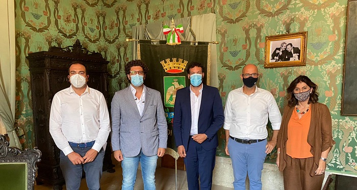 Il sindaco Francesco Italiana ha accolto nella sala verde di palazzo Vermexio un gruppo dirigente di Confcommercio composto dal presidente Elio Piscitello, dal presidente della Fipe (pubblici esercizi) Maurizio Filoramo, dal presidente delle attività portuali Francesco Diana, dalla presidente di Federazione moda Italia Angela Tarascio e dal direttore Francesco Alfieri.
