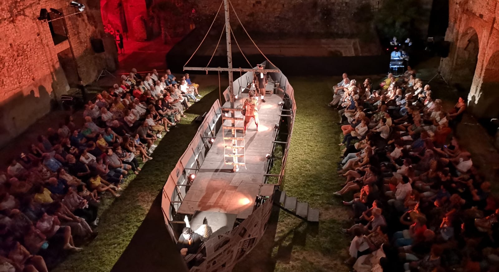 Nella sontuosa e classica atmosfera di Palazzo Gambardella, lungo il corso principale, avremo la rappresentazione del “Dio arruolato”. Al molo di attracco, sul mare la scena conclusiva in un contesto suggestivo.