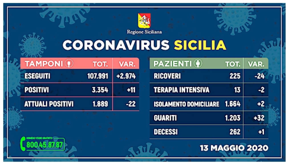 Questo il quadro riepilogativo della situazione nell’Isola, aggiornato alle ore 15 di oggi, in merito all’emergenza Coronavirus, così come comunicato dalla Regione Siciliana all’Unità di crisi nazionale.