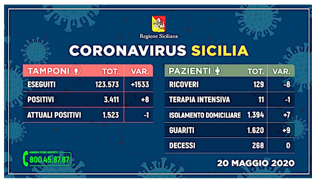 Si raccomanda di attenersi scrupolosamente alle indicazioni fornite dal ministero della Salute per contenere la diffusione del virus. Per ulteriori approfondimenti visitare il sito dedicato www.siciliacoronavirus.it o chiamare il numero verde 800.45.87.87.