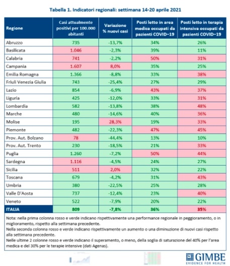 La percentuale di popolazione che ha completato il ciclo vaccinale è pari al 7,5% – dice Gimbe – a cui aggiungere un ulteriore 8,7% solo con prima dose; la percentuale di over 80 che ha completato il ciclo vaccinale è pari al 39,7% a cui aggiungere un ulteriore 19,9% solo con prima dose; la percentuale di popolazione 70-79 anni che ha completato il ciclo vaccinale è pari al 9% a cui aggiungere un ulteriore 25,9% solo con prima dose; la percentuale di popolazione 60-69 anni che ha completato il ciclo vaccinale è pari al 1,9% a cui aggiungere un ulteriore 5,7% solo con prima dose
