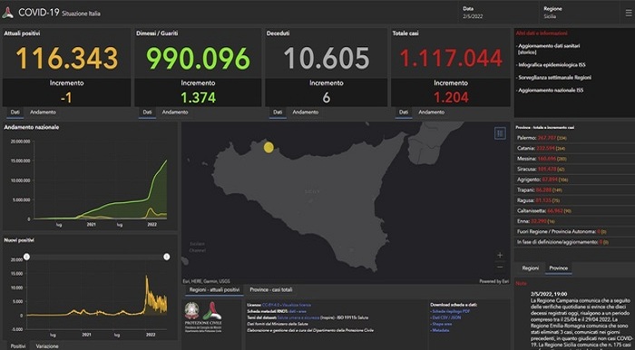 A livello provinciale si registrano a Palermo 334 casi, Catania 264, Messina 283, Siracusa 62, Trapani 149, Ragusa 75, Caltanissetta 90, Agrigento 269, Enna 16.
