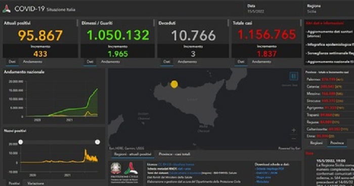 La Sicilia è al settimo posto per contagi. Gli attuali positivi sono 95.867 con un aumento di 433 casi. I guariti sono 1.965 mentre le vittime sono 3 portano il totale dei decessi a 10.766.