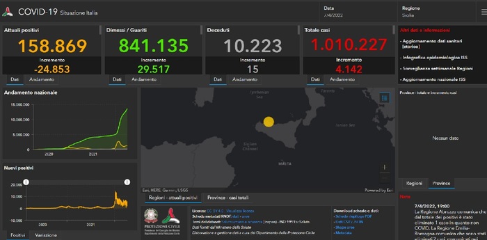 Questi i dati del contagio nelle singole province Palermo 1.273 casi, Catania 760, Messina 573, Siracusa 456, Trapani 449, Ragusa 304, Caltanissetta 232, Agrigento 438, Enna 194