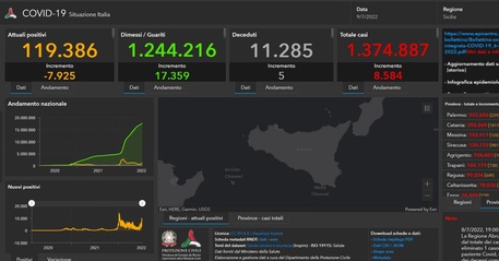 La Sicilia è al quinto posto per contagi. Gli attuali positivi sono 119.386 con una diminuzione di 7.925 casi. I guariti sono 17.359 mentre 5 sono le vittime che portano il totale dei decessi a 11.285.