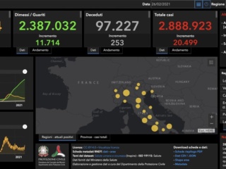 I decessi sono 253 (ieri 308), per un totale di 97.227 vittime da inizio epidemia. È quanto emerge dal bollettino quotidiano del ministero della Salute.