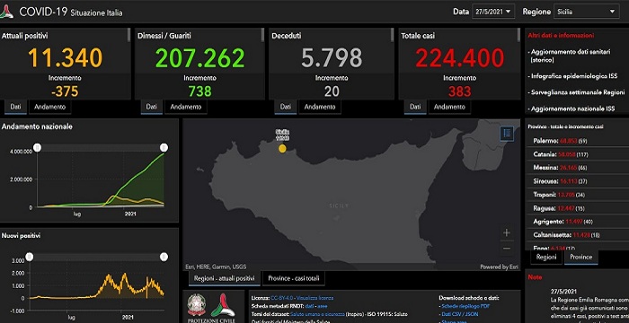 Sono 383 i nuovi positivi al Covid in Sicilia, su 18.104 tamponi processati, con una incidenza di circa 2,1%. La Regione anche oggi è al terzo posto in Italia per numero di contagi giornalieri.