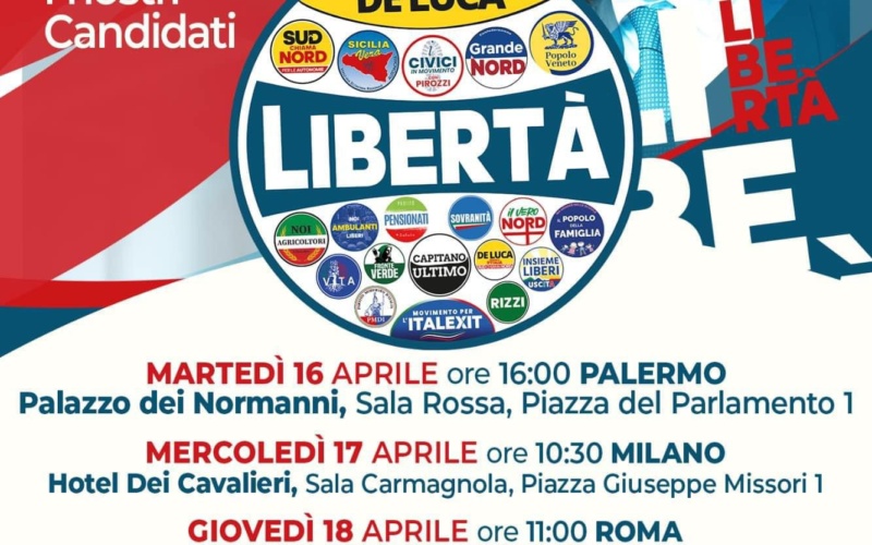 Dopo aver chiuso le ultime alleanze e definitivo il simbolo della Lista Libertà che sarà presente alle prossime elezioni Europee, la settimana prossima si svolgeranno le conferenze stampa di presentazione di tutti i candidati delle 5 circoscrizioni.