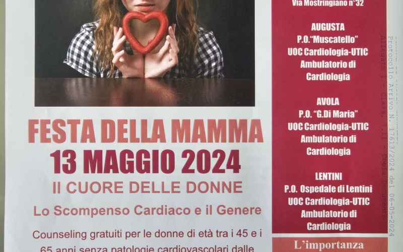 Le donne di età compresa tra i 45 e i 65 anni, in assenza di patologie cardiovascolari, potranno recarsi presso l’ambulatorio di cardiologia di via Mostringiano, a Priolo, dalle 10:00 alle 13:00, dove potranno effettuare gratuitamente una consulenza con uno specialista, che fornirà anche materiale informativo.