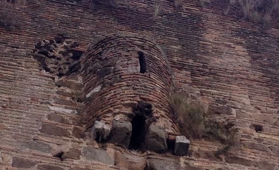 Distrazione. Pochissimi se ne accorgono, perché pochi alzano gli occhi. A Piazza Fiume, proprio sopra il parcheggio dei taxi, sulle Mura Aureliane c’è una latrina militare dell’epoca (III secolo d.C.), molto ben conservata.