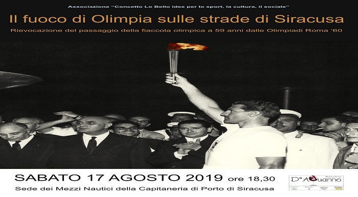 Il prossimo anno ricorrerà il 60/mo anniversario della disputa dei Giochi Olimpici a Roma. In quell’anno, il 18 agosto 1960, la Fiaccola Olimpica fece il suo approdo in terra italiana proprio a Siracusa avendo nell’indimenticato Concetto Lo Bello il suo primo tedoforo.