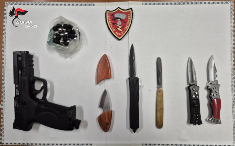 I Carabinieri della Sezione Radiomobile di Siracusa hanno denunciato un 55enne, di origini tortoriciane, trovato in possesso di armi e oggetti atti ad offendere. La scorsa notte, l’uomo, con precedenti penali per reati in materia di armi e contro la persona, è stato fermato e controllato dai Carabinieri mentre percorreva via Ignazio Immordini a bordo della propria autovettura. Nel corso della perquisizione è emerso che l’uomo occultava, in una tasca interna del giubbotto che indossava, un coltello a serramanico di genere proibito e nascondeva all’interno di uno zaino appoggiato sul sedile, una pistola ad aria compressa, priva di tappo rosso con relativo munizionamento (di 53 biglie, 29 in acciaio, 28 in gomma dura e 1 in vetro).