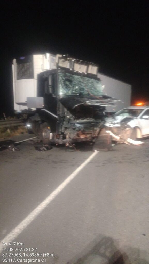 Cinque i veicoli coinvolti: due autoarticolati, una Range rover Evoque, una Kia Sportage e una Hyundai Tucson finita in un canale dove viaggiavano le due vittime, estratte dai vigili del fuoco di Caltagirone e Palagonia
