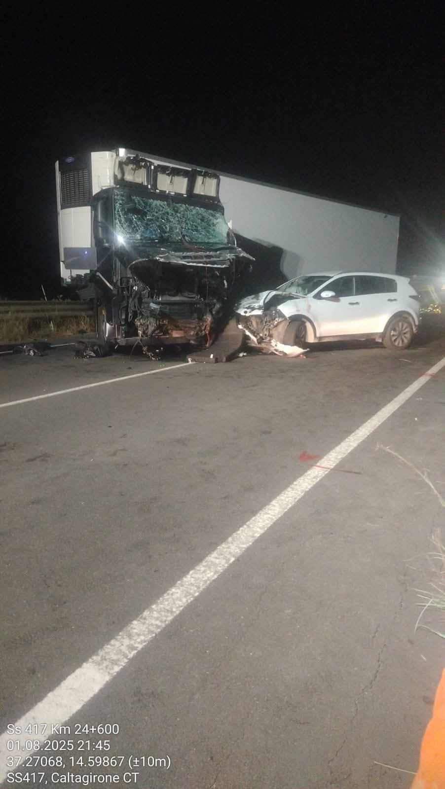 Cinque i veicoli coinvolti: due autoarticolati, una Range rover Evoque, una Kia Sportage e una Hyundai Tucson finita in un canale dove viaggiavano le due vittime, estratte dai vigili del fuoco di Caltagirone e Palagonia
