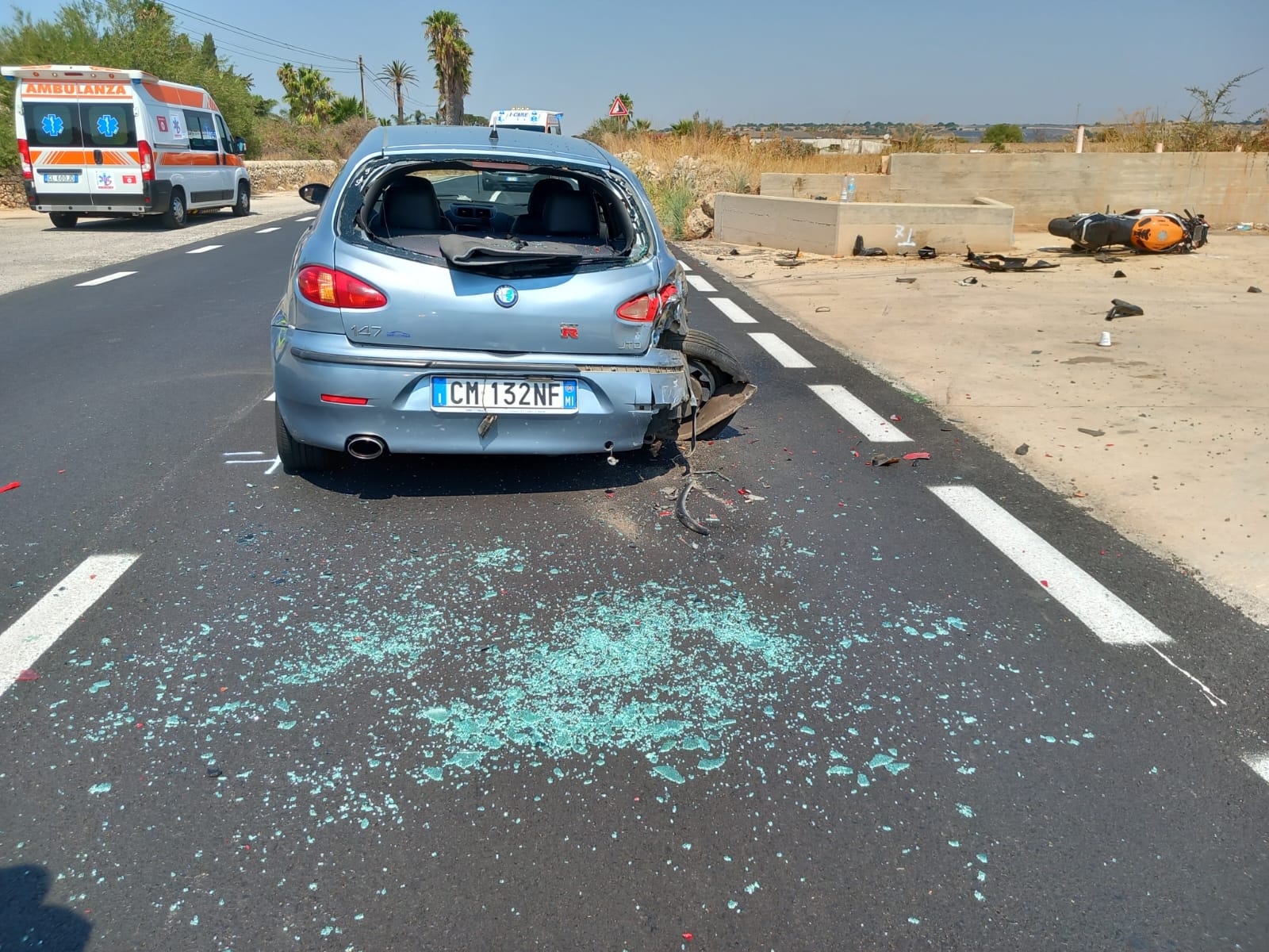 Incidente stradale sulla circonvallazione Donnalucata Scicli all’altezza con via Patrasso e contrada Torre Saracena, nell’incidente coinvolte due autovetture una Nissan Micra e una Fiat tipo, ferito u centauro.