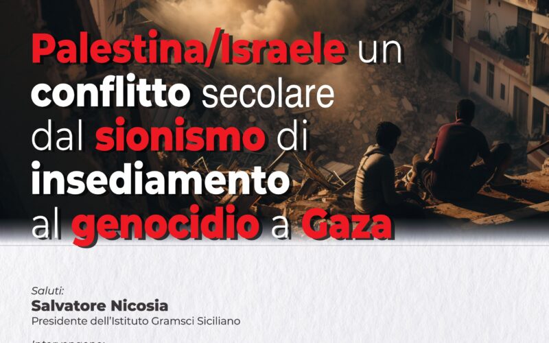 Lunedì 6 ottobre alle ore 17.30, presso l’Istituto Gramsci Siciliano, si terrà un incontro pubblico dal titolo “Palestina/Israele: un conflitto secolare. Dal sionismo di insediamento al genocidio a Gaza”. L’iniziativa mira a fornire strumenti di comprensione storica di una vicenda che, tornata drammaticamente al centro dell’attenzione mondiale dopo l’attacco di Hamas del 7 ottobre 2023 e la durissima risposta militare di Israele, non può essere ridotta alle sole cronache dell’ultimo anno.