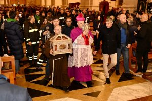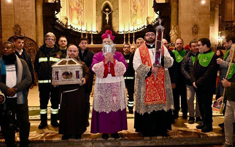 La fede ci consente di affidarci ai santi e di camminare in loro compagnia: “Sant’Agata e Santa Lucia ci attestano che nella fede ci stringe un legame che supera il tempo, lo spazio. Accostiamoci ai santi, lasciamoci visitare da loro, tocchiamo con mano la loro esperienza di vita – ha detto. mons. Lomanto -. Viviamo in comunione con loro: quanto più semplice è nella fede il segno del nostro legame con loro ‒ una preghiera di intercessione, un intimo colloquio, lo sguardo di pietà verso un’immagine, il tocco o il bacio di un simulacro o di una reliquia, o altro ‒ tanto più intenso, vivo e profondo è il rapporto spirituale che stabiliamo con loro nel mistero della divina presenza, perché la santità contagia e genera sempre altra santità”.