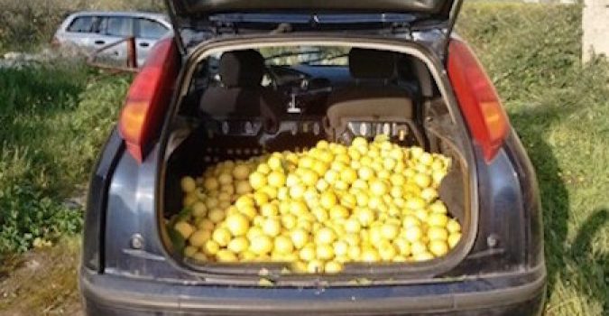 Sul posto i poliziotti hanno trovato un’autovettura, già caricata con oltre 200 chilogrammi di limoni, con a bordo tre uomini, rispettivamente di 30, 33 e 42 anni, bloccati dall’autovettura del proprietario del terreno dal quale erano stati asportati gli agrumi.Il tempestivo intervento degli Agenti, che già si trovavano in zona per i controlli in atto, ha consentito di fermare, identificare e denunciare i 3 individuie di restituire i limoni raccolti al legittimo proprietario.