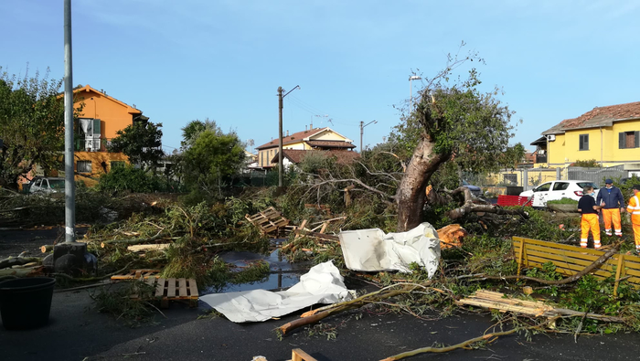 San Giuseppe La Rena e nella zona industriale causate della tromba d’aria e dai violentissimi nubifragi che hanno interessato la zona e soprattutto la zona di sud nei pressi dell’aeroporto di Fontanarossa. Lo rende noto l’ufficio stampa del Comune. Operatori della Multiservizi, della Dusty e della protezione civile comunale e regionale stanno operando insieme ai vigili del fuoco per fronteggiare i gravi danni, soprattutto ai capannoni delle aziende che operano nella zona industriale, rovinando mezzi meccanici e di lavoro, in alcuni casi con vere e proprie devastazioni dei luoghi di lavoro. Numerose le automobili in sosta danneggiate e le parti esterne di alcune abitazioni che sono crollate. Decine gli alberi abbattuti dalla furia del vento e della pioggia, alcuni muri sono crollati e numerosi detriti sono ancora sulle strade e in fase di rimozione. A garanzia della sicurezza dei cittadini, il Cimitero di Acquicella è stato temporaneamente chiuso. Nelle zone interessate agli eventi atmosferici classificati “estremi”, l’assessore alla protezione civile Alessandro Porto e il capo di gabinetto Giuseppe Ferraro, in stretto contatto con il vicesindaco Roberto Bonaccorsi stanno coordinando gli interventi in emergenza. Per segnalazioni, oltre a quelli di pronta emergenza è attivo il numero 095484000 e l’indirizzo email: protezionecivile@comune.catania.i