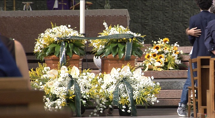 Le due bare vicine, ricoperte di fiori. La chiesa di santa Rita colma di persone che hanno voluto dare l’estremo saluto ad Armando Tropea e alla moglie, Maria Pia Reale, vittime dell’incidente stradale avvenuto venerdì sera in via Elorina. Sono e saranno sempre con noi – ha detto mons. Giuseppe Sudano nella sua commovente omelia – sono angeli che ci guardano dal cielo e stanno in mezzo a noi, ci allietano con la loro gioia. Armando e Mari Pia saranno sempre nei nostri cuori. Questa tragedia lascia in tutti noi un vuoto che mai nessuno potrà colmare. Grazie per tutto quello che ci avete donato, il vostro sorriso è il più grande patrimonio che lasciate oggi in eredità a tutta la nostra comunità». Parole piene di emozioni quelle del parroco della chiesa di Santa Rita, gremita di parenti, amici e conoscenti che hanno voluto essere presenti per dare l’ultimo saluto ad Armando e Maria Pia.