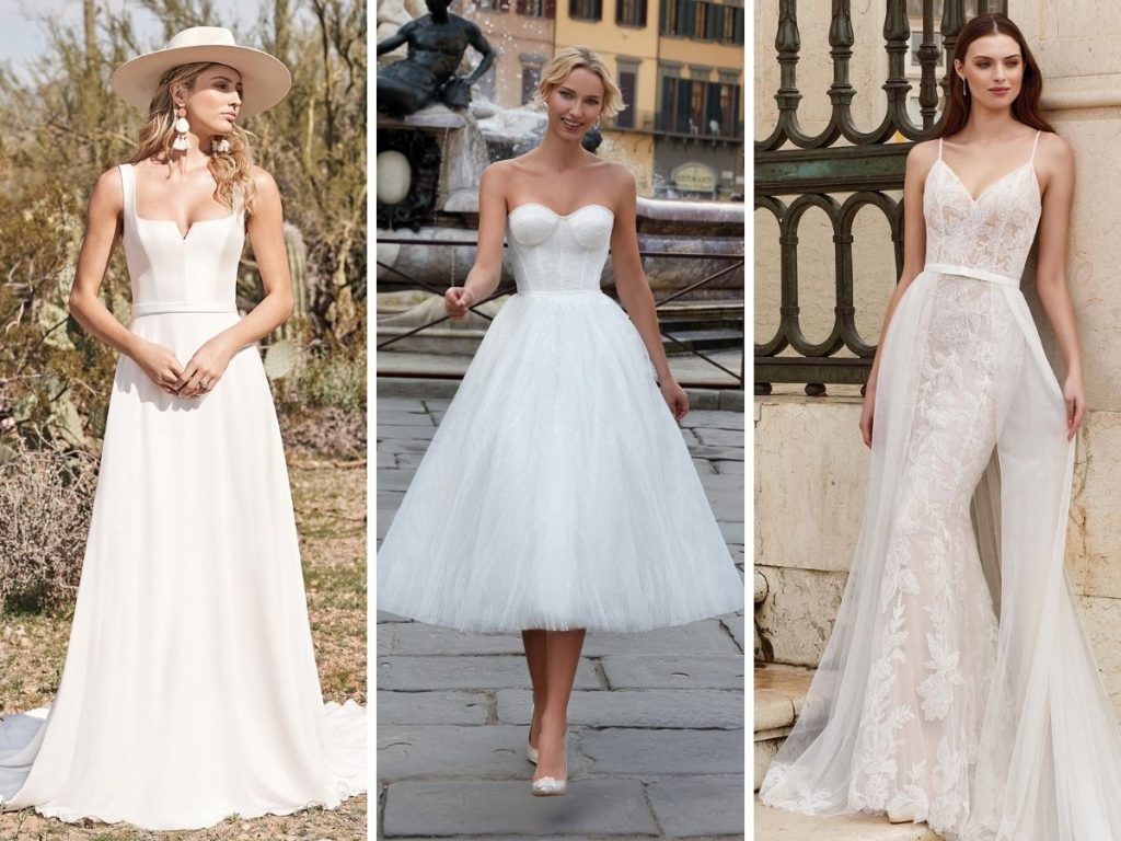 Un’altra tendenza alla quale assisteremo sarà quella di spose con abiti corti: che sia per la cerimonia civile, la minimonia in attesa della celebrazione vera e propria, i vestiti da sposa corti sono una buona opzione per il cambio d’abito o per le spose più anticonformiste.