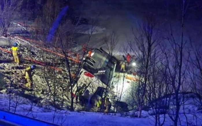 Una corriera nel nord della Norvegia con circa 60-70 persone a bordo è stata coinvolta in un grave incidente ed è precipitata in mare.