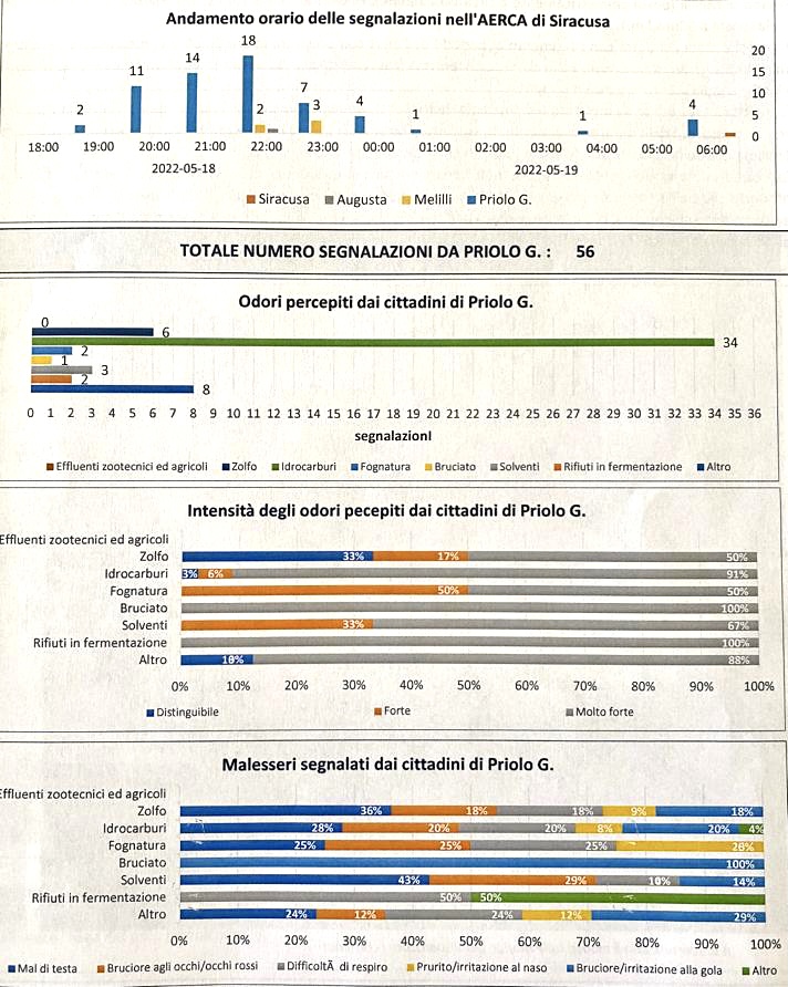 56 le segnalazioni all’app NOSE pervenute il 18 maggio scorso, quando i cittadini di Priolo Gargallo hanno dovuto fare i conti con odori molesti provenienti dalla zona industriale.