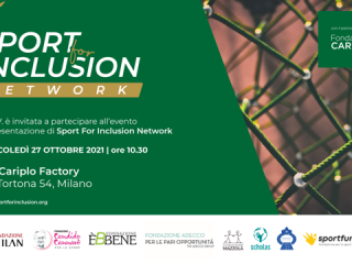 Si terrà Mercoledì 27 ottobre, patrocinata da Fondazione Cariplo, nella sede di Cariplo Factory in via Tortona 54 a Milano, la presentazione pubblica di Sport for Inclusion Network, una community indipendente che promuove la collaborazione tra fondazioni e altre organizzazioni del Terzo Settore e del mondo dello sport.