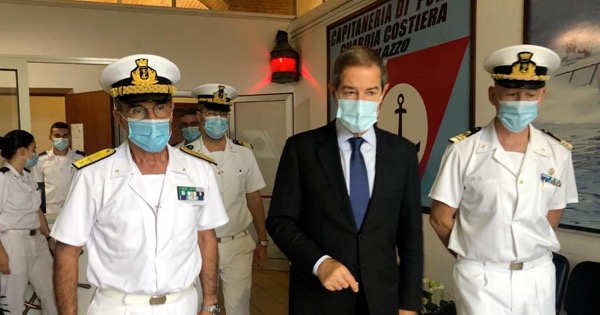 02 ottobre 2020 – Il presidente della Regione Siciliana Nello Musumeci ha voluto questo pomeriggio incontrare a Milazzo i vertici della Capitaneria di porto per esprimere “il cordoglio del governo regionale e della comunità isolana” per la tragica morte del sottufficiale Aurelio Visalli. Ad accogliere Musumeci c’erano il contrammiraglio Giancarlo Russo e il comandante della Guardia costiera di Milazzo, Massimiliano Mezzani.