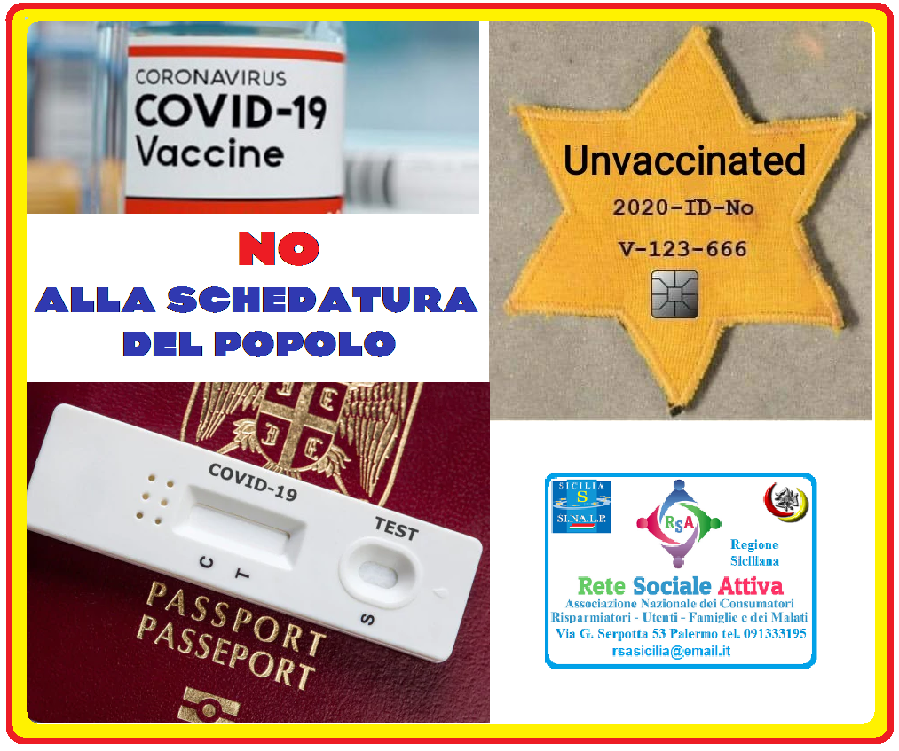 Covid – Rete Sociale Attiva: “Vorrebbero “schedare” i cittadini vaccinati con il rilascio di un ipotetico patentino”