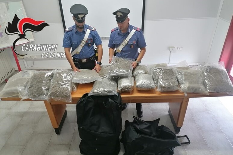 A bordo del furgone sul quale viaggiavano, sulla strada statale 417 Catania-Gela, sono stati trovati e sequestrati due borsoni neri con 20 involucri sottovuoto, contenenti complessivamente quasi 21,500 chilogrammi di marijuana.
