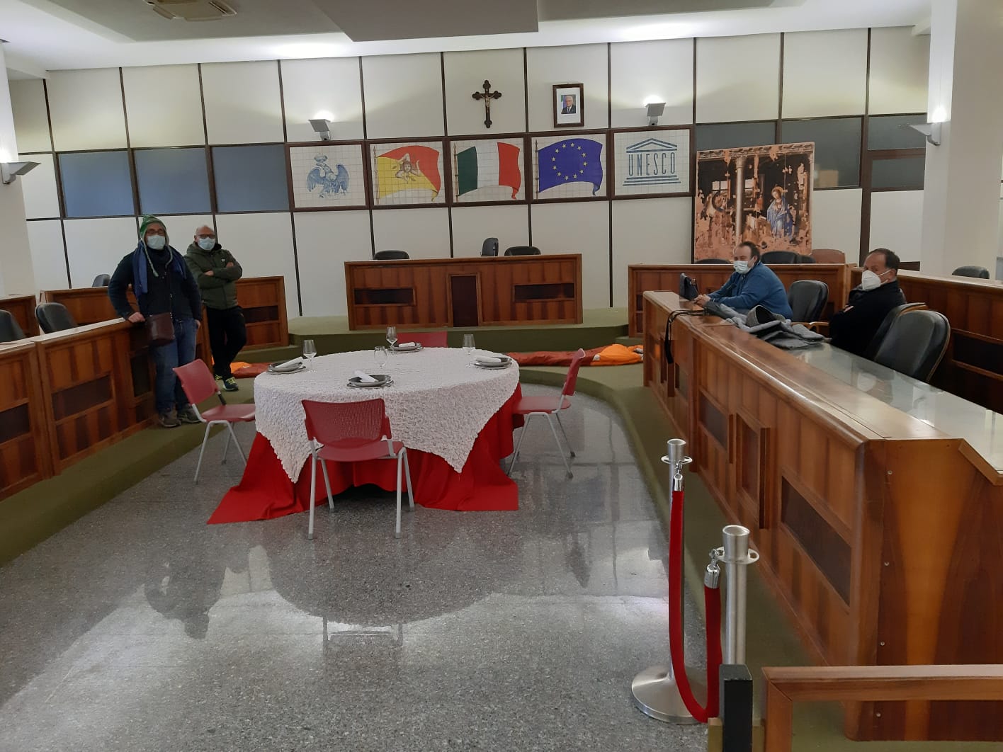 Dopo avere appeso grembiuli e divise al cancello del palazzo di città, i ristoratori di Palazzolo Acreide hanno inscenato una nuova manifestazione di protesta. Questo pomeriggio si sono recati al Municipio dove hanno occupato l‘aula consiliare. Armati di sacco a pelo e tanta pazienza, hanno deciso di protestare a oltranza a causa del disagio provocato loro dalle misure di contenimento del Covid.