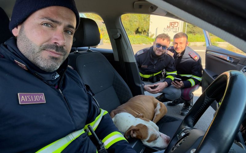 Pitbull salvato dalla Polstrada