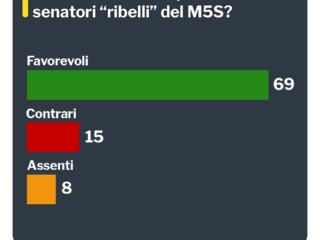 Sono stati in tutto 15 i senatori Cinquestelle ‘frondisti’ a palazzo Madama. Risultano assenti, scorrendo i tabulati della votazione, 6 pentastellati che però non risultano né in congedo né in missione. I voti contrari sono stati dei senatori: Rosa Abate, Luisa Angrisani, Margherita Corrado, Mattia Crucioli, Fabio Di Micco, Silvana Giannuzzi, Bianca Granato, Virginia La Mura, Elio Lannutti, Barbara Lezzi, Matteo Mantero, Cataldo Mininno, Nicola Morra, Fabrizio Ortis, Vilma Moronese.