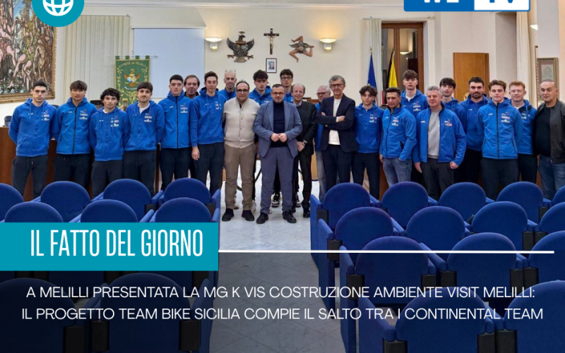 Melilli ha ospitato, il 30 gennaio nella saletta Carta, la presentazione ufficiale della MG K Vis Costruzione Ambiente – Visit Melilli, squadra nata dalla collaborazione tra Team Bike Sicilia e MG K Vis, che nel 2026 compie un passaggio decisivo entrando nella categoria Continental Team, pronta a competere in un contesto vicino al professionismo. All’evento sono presenti 14 dei 16 atleti: Giuseppe Carmeni (siciliano), Mattew Jonathan Kingston (inglese), George Wood (inglese) William Rees Harding (inglese), Tommaso Alunni, Luca Attolini, Marcozzi Mattia, Ivan Taccone, Edoardo Puzzo, Luca Laudi, Matteo Spreafico, Vittorio Friggi, Francesco Parravano, Andrea Cantoni, Pavel Torkachenko e Maksim Mishankov (russi). Il progetto guarda con decisione oltre i confini nazionali: tra i partner figurano anche due aziende cinesi a conferma di una visione che punta a rafforzare relazioni e opportunità internazionali. Intervistato dalla giornalista Michela Italia, il sindaco Giuseppe Carta sottolinea il valore dell’iniziativa per la comunità:
