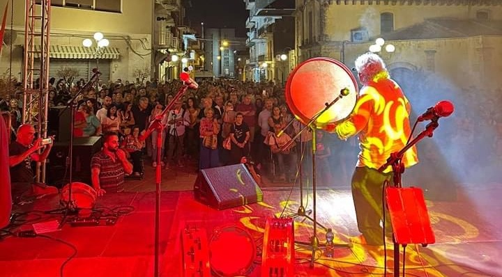 Sul palco, la sua dirompente energia ha coinvolto il pubblico presente: musica, poesia e azione scenica, brani dalle sonorità mediterranee ispirati alla tradizione popolare e alle sue radici da contadino. Alfio Antico ha portato a Priolo un patrimonio di favole, detti, racconti arcaici evidenziati dalla sua voce incantata.