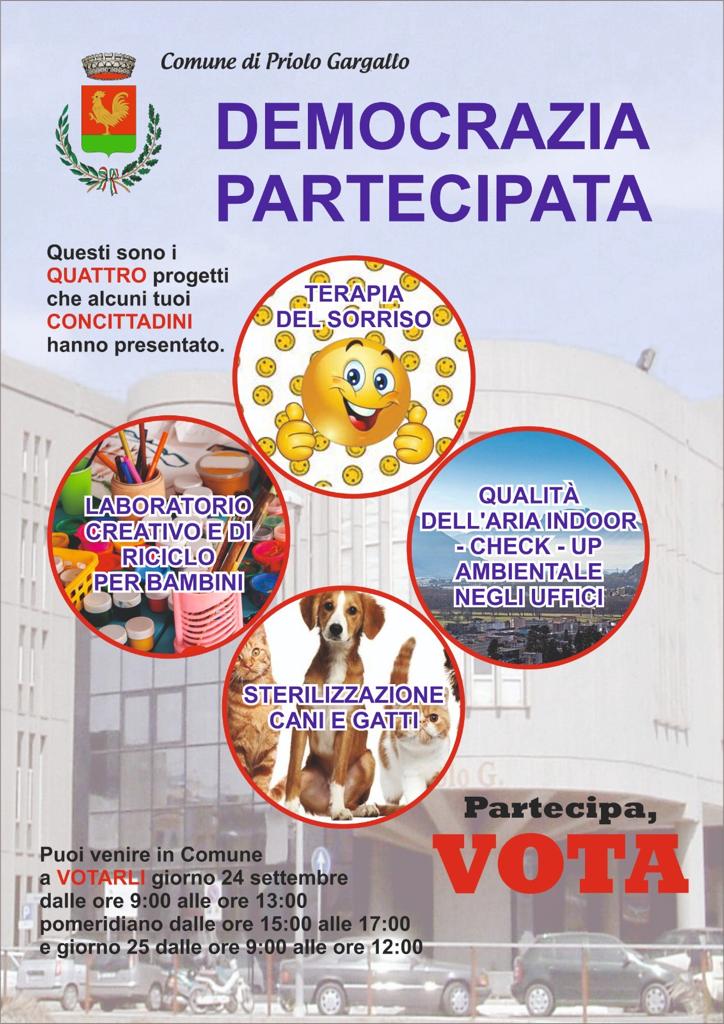Cittadini protagonisti delle scelte e dei processi decisionali dell’Amministrazione Comunale. Saranno i residenti a Priolo Gargallo, che abbiano compiuto i 18 anni di età, a decidere quale tra i progetti formulati e presentati dagli stessi cittadini, dovrà essere realizzato.
