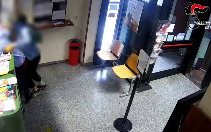 Il 37enne si sarebbe presentato il giorno precedente, in orario di chiusura, presso la filiale della Banca Agricola Popolare di Ragusa di Mineo con il volto parzialmente travisato da occhiali da sole e berretto, chiedendo generiche informazioni ad un dipendente dell’Istituto di credito, plausibilmente al fine di capire come accedere ai locali, quindi strutturare l’azione criminale. Il giorno successivo, l’uomo sarebbe tornato sul posto in orario di ricevimento e, dopo essersi introdotto nell’istituto, in quel momento privo di utenza, avrebbe divelto un supporto rigido in plexiglas e con esso aggredito un dipendente, costringendolo con violenza e minacce a seguirlo fino alla zona delle casseforti.