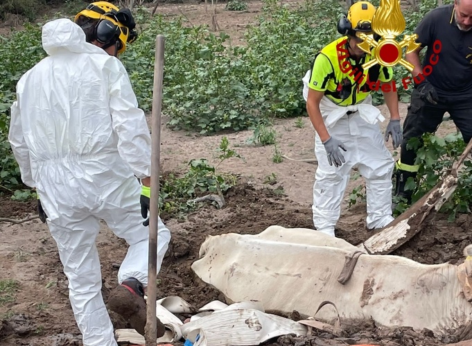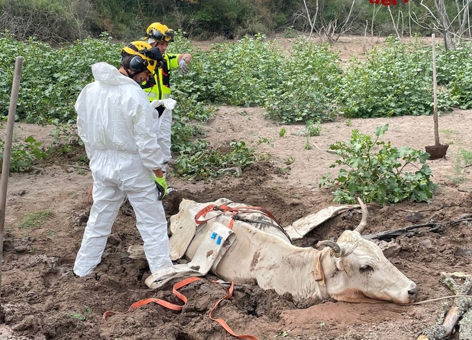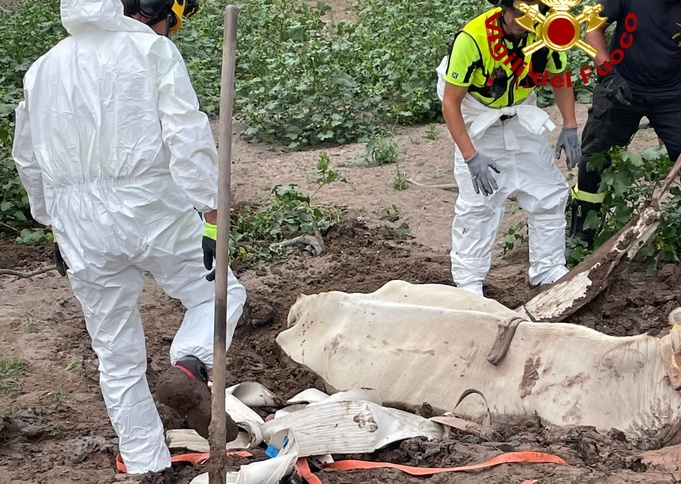 Recuperata una mucca impantanata in un campo – video e foto
