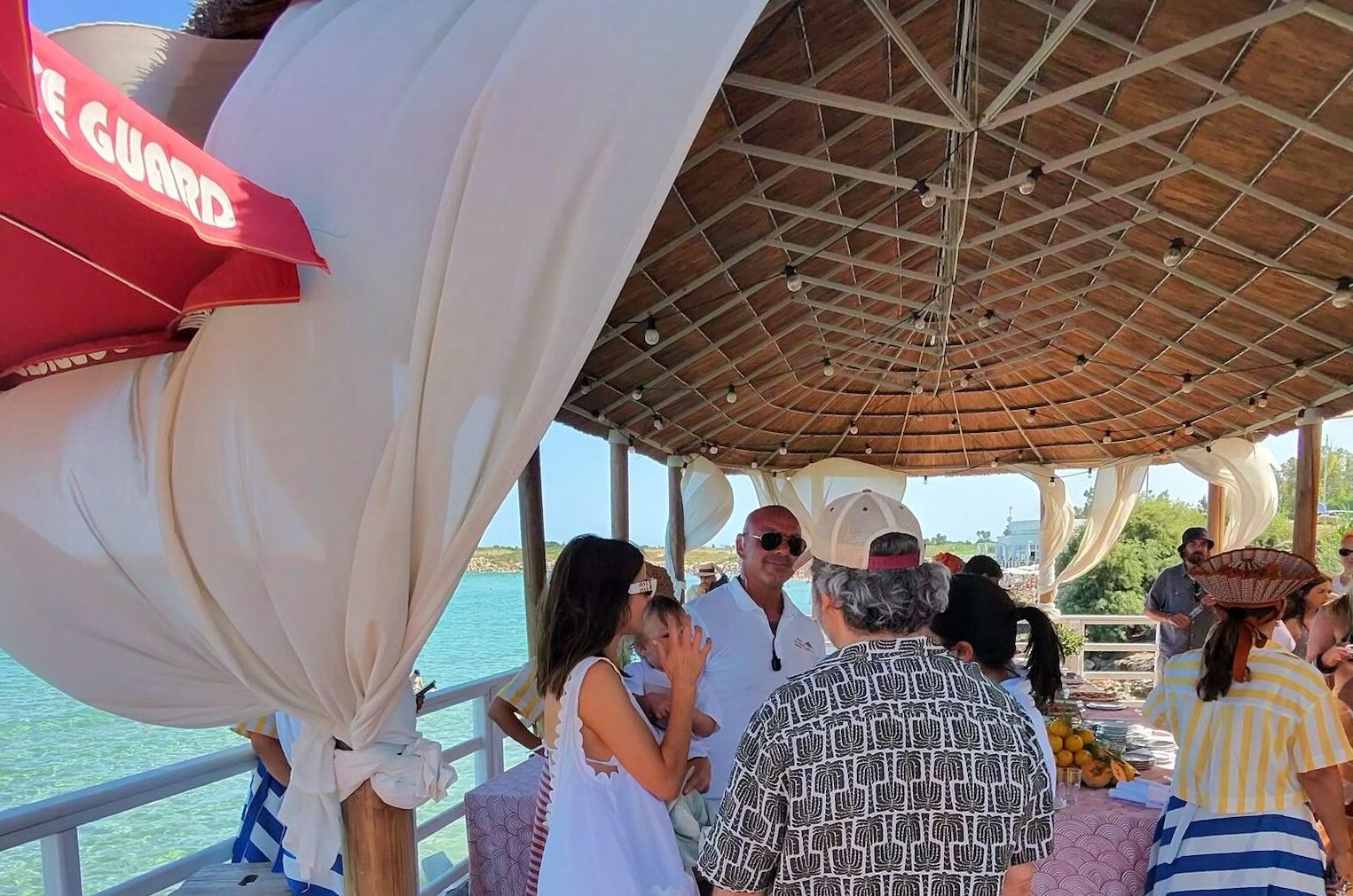 Dopo il matrimonio celebrato a Noto, dove Sting era presente, i due novelli sposi con il figlioletto, hanno voluto incontrare i tanti amici provenienti da ogni parte del mondo con un rinfresco tenuto in riva al mare. Ai fornelli lo chef stellato Riccardo De Pra che ha deliziato il palato dei presenti con arancini, melanzane e costolette di agnello.