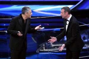 “Mi siete mancati, sono la vostra terza dose, sono il booster dell’intrattenimento“: Fiorello entra in scena dall’esterno dell’Ariston brandendo un termometro con cui misura la febbre agli spettatori, e fa immediatamente quello che gli riesce meglio, lo scaldapubblico e ironizza sull’amico Amadeus stalkerizzatore che lo ha marcato stretto per riaverlo all’Ariston. “Non ti voglio vedere più, se non al funerale”, scherza lo showman. “Mi sento un po’ Mattarella: neanche lui voleva tornare, aveva fatto i suoi piani, voleva fare The Voice Senior”, scherza Fiorello sul palco dell’Ariston e poi chiama l’applauso per il presidente della Repubblica. Fiorello ironizza anche su Draghi: “Ci voleva andare al Quirinale, aveva già preparato il discorso di fine anno a banche unificate”.