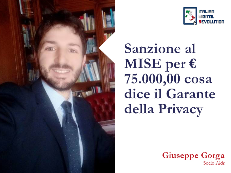 Con Ordinanza di ingiunzioni assunta nei confronti di Ministero dello Sviluppo Economico – 11 febbraio 2021 – Registro dei provvedimenti n. 54 dell’11 febbraio 2021[doc. web n. 9556625] IL Garante Privacy ha sanzionato Il Ministero Dello Sviluppo Economico (MISE) per 75.000,00 di euro per avere nominato in ritardo il Responsabile della Protezione Dati e trasmesso con ritardo i relativi dati e per avere diffuso i curricula di 5000 di professionisti e Manager
