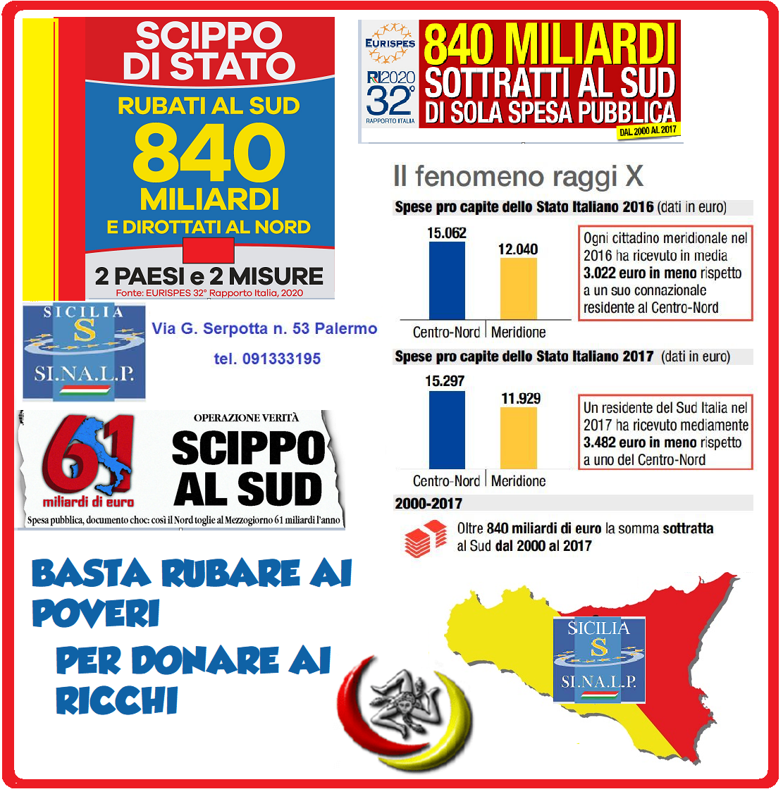 Questo Governo Nazionale continua imperterrito nella distruzione del Sud facendo propria, al contrario, la famosa massima di Robin Hood, e cioè “rubare ai Poveri per donare ai Ricchi”.